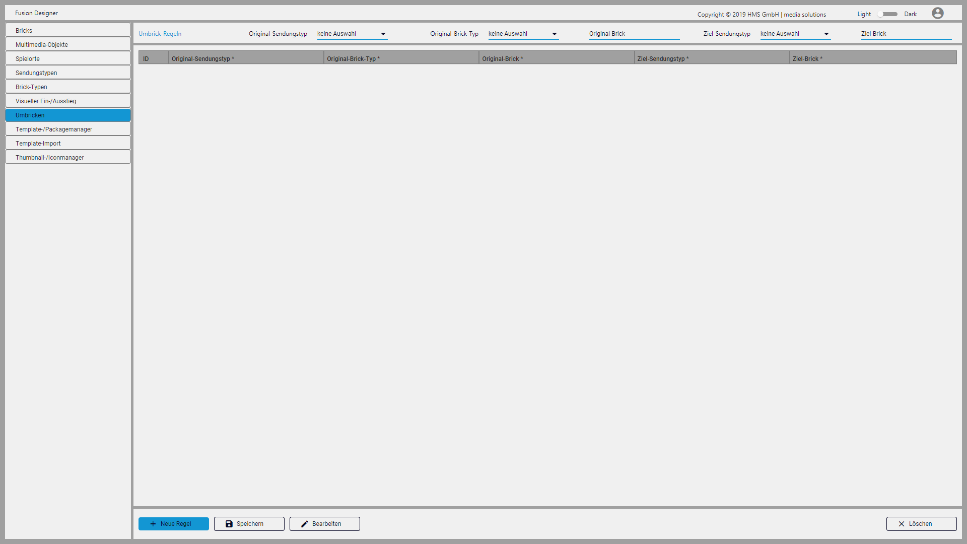 Auf der Seite Umbricken können Sie Regeln zum "Umbricken" definieren, um Sendungstypen und Bricks neu zuzuordnen.